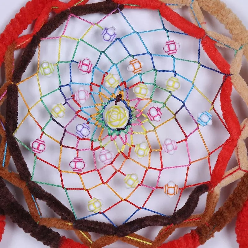 La magien av denne fengslende drømmefangeren ta plass i ditt soveområde. Hengende fra taket, forvandler den ditt hvilested til et fredsfullt, harmonisk, og avslappende helligdom.