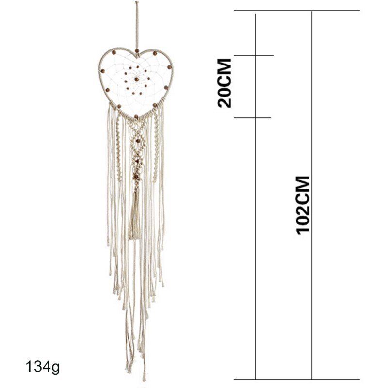 Ønsker du å gi soverommet ditt en innbydende og varm atmosfære? Drømmefangeren laget i macramé, med sitt delikate hjerteformede design, er et ideelt tillegg for å skape en rolig og fredelig stemning, perfekt for et område dedikert til avslapning og søvn. Dette er et must-have for entusiaster av kunsten macramé, bohemske dekorasjoner og minimalistisk stil.