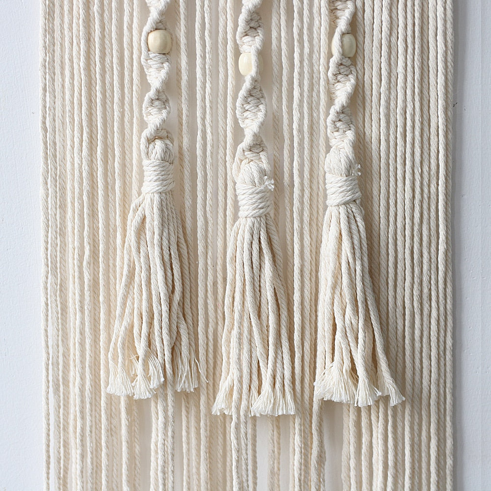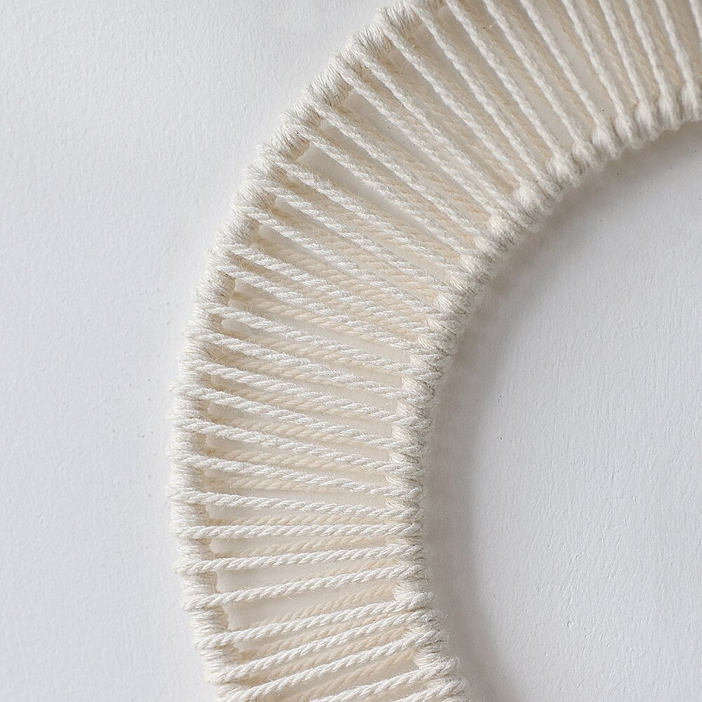 Ønsker du å tilføre et håndlaget element som gir et originalt og varmt preg til din bohemske innredning? Oppdag denne enestående drømmefangeren i macramé som elegant illustrerer månen og solen! Denne tradisjonelle vevekunsten, macramé, krever stor oppmerksomhet og tidsinnsats for å lages. For å skape en koselig og intim atmosfære, hvorfor ikke henge opp dette macramé-ornamentet rett over din hvileplass, i nærheten av en kilde til mykt lys? Integrer det i dekoren din med en rekke LED-lys, eller velg for varmen av stearinlys!
