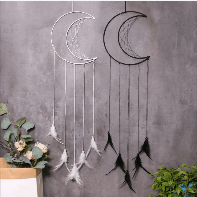 Overlat drømmene dine til beskyttelsen av Drømmefangeren prydet med en skjør Månesigd. Dette nattlige smykket vil fremme en dyp ro og kvalitetshvile ved å rense tankene dine, dyppe deg inn i et beroligende og innbydende miljø, og holde borte negativ energi i nærheten.