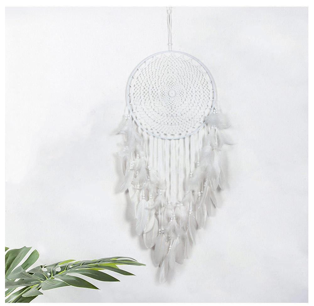 Våg å forskjønne nettene dine med denne vidunderlige drømmefangeren av imponerende størrelse. Den vil være din uadskillelige følgesvenn i søken etter en fredelig natt. Ta til deg skjønnheten av dens majestetiske fjær av et feilfritt hvitt og seil inn i en drømmeverden med absolutt fred.
