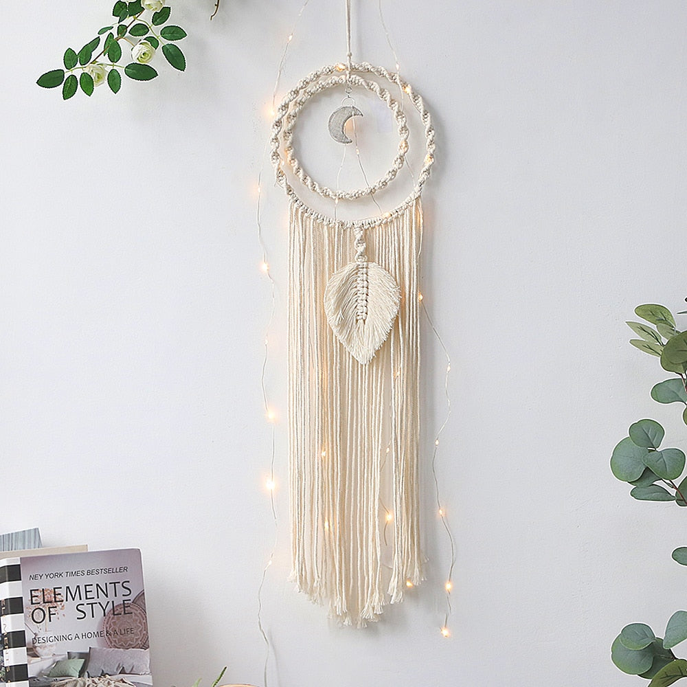 Er du på jakt etter et bohemsk veggdekorasjonselement som er både estetisk tiltalende og trivelig? Se ikke lenger, for denne vegghengte drømmefangeren laget i makramé er et must-have! Makramé er en tradisjonell og kunstnerisk teknikk som baserer seg på det delikate kunstverket av knytting.